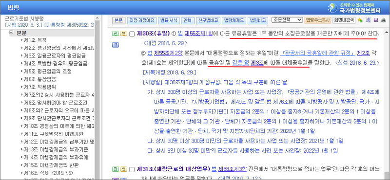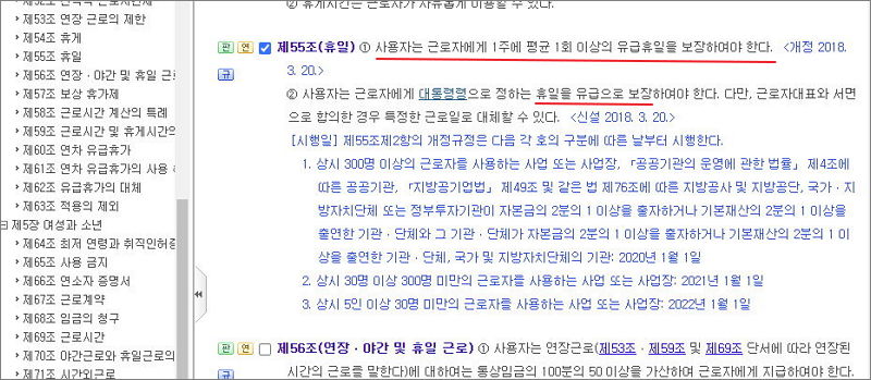 ▲ 주휴수당 참고 - 노동법 제 55조