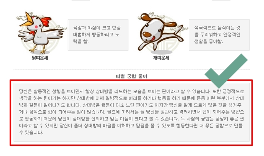 띠별 궁합 풀이는 꽤 상세한 편인데요.