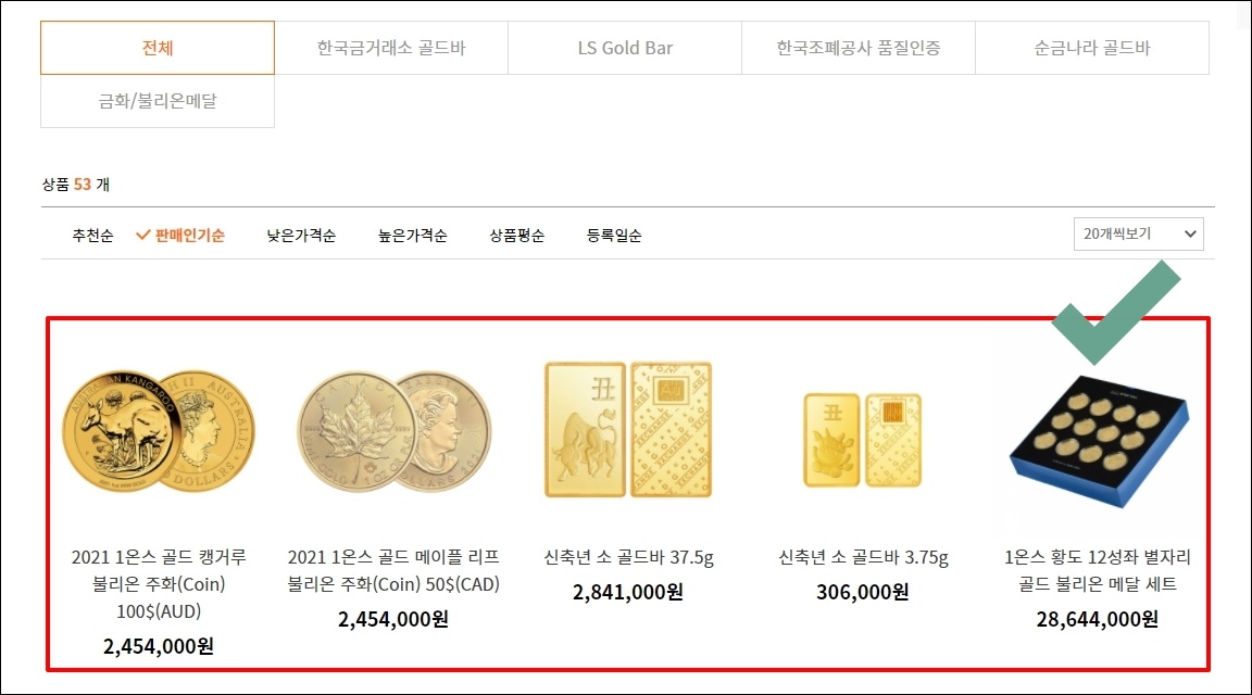 한국 금 거래소 사이트에서는 주화나 골드바, 메달 세트를 구매하는 것도 가능한데요. 여기서 구입하는 가격은 우리가 봤던 금시세보다 조금 더 비쌀 수 있어요. 가공을 해야 하고, 판매하려면 인건비도 들기 때문이라고 생각이 되네요. 이쁘장하기 때문에 장식용으로 사용하기에도 좋은 물건이 많네요.