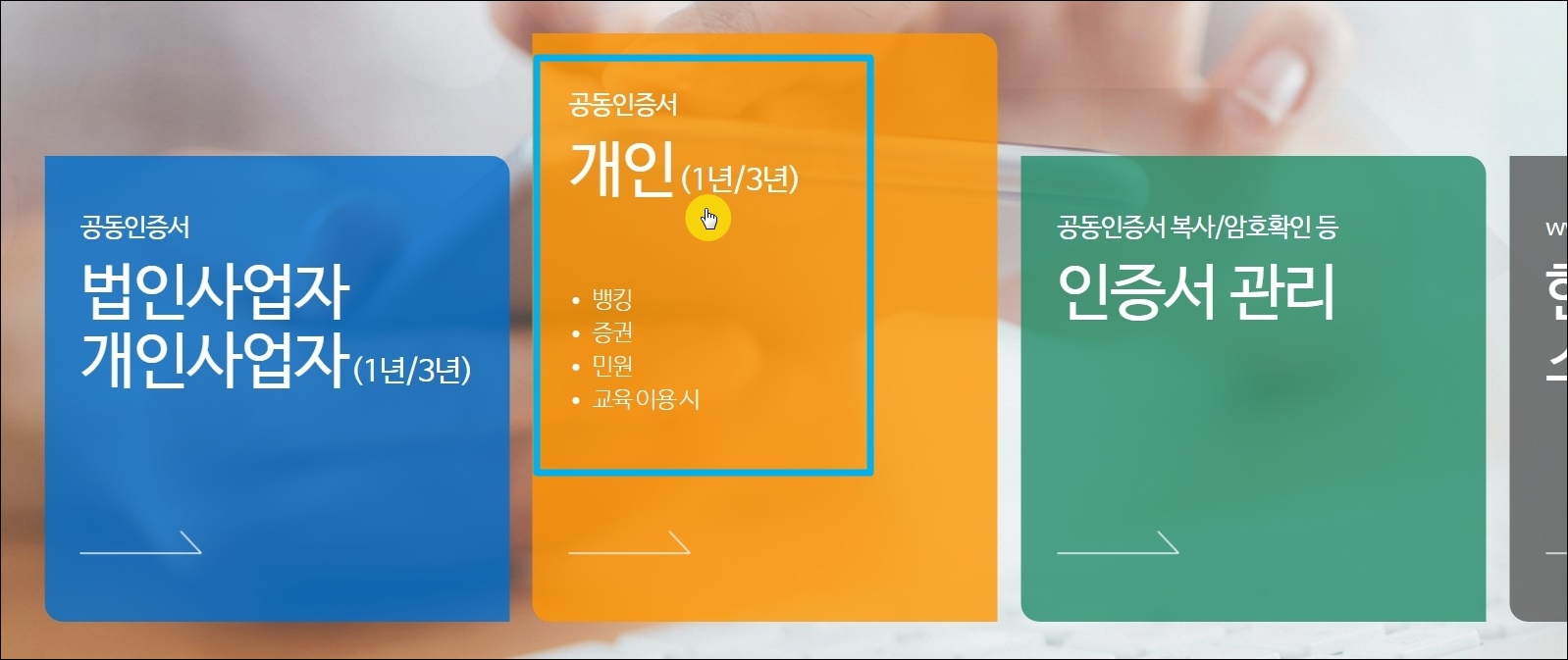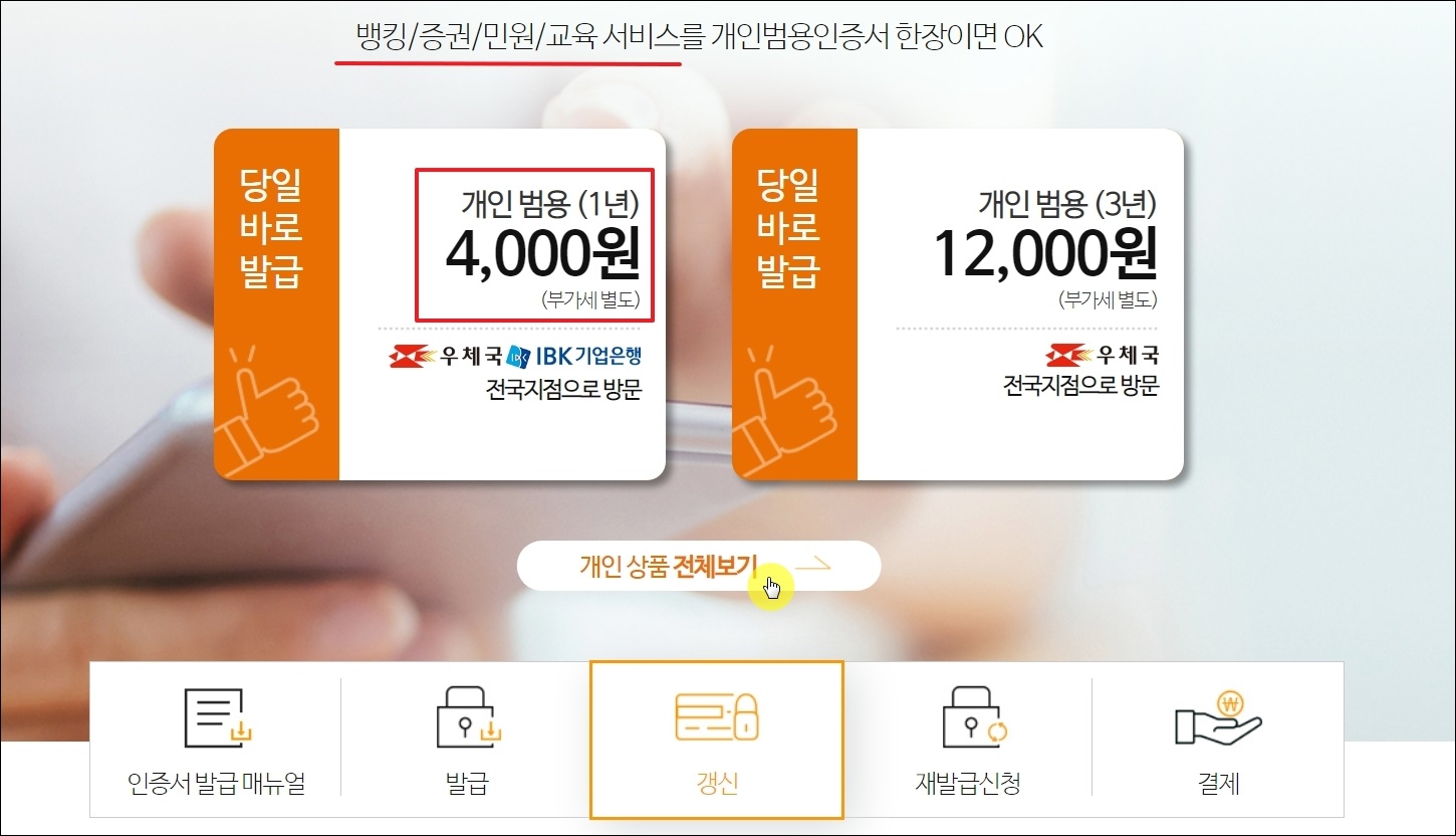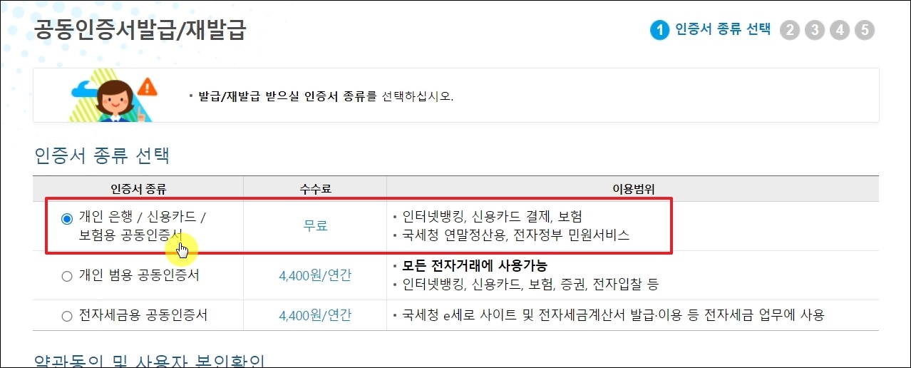 이곳에서는 일반적으로 많이 사용하는 개인용 공동인증서는 물론이고, 법인사업자 또는 개인사업자용 공동인증서도 이곳에서 만들 수 있습니다.