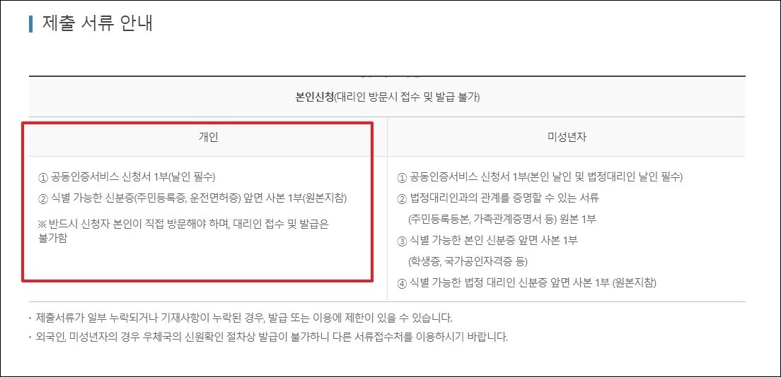 신청을 하고, 서류를 제출해야 발급이 완료가 되는데요. 공동인증서비스 신청서 1부, 신분증을 가지고 안내하는 곳으로 방문하면 됩니다.