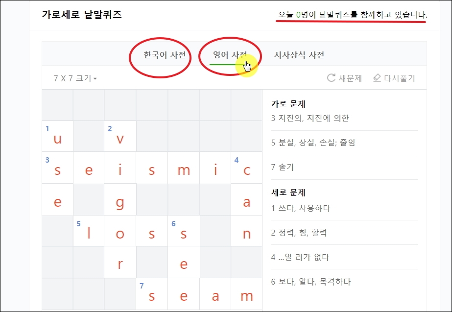 ▼영어 공부를 하는 상황이라면 영어 사전의 내용을 바탕으로 만들어진 낱말 퀴즈를 풀어보는 것도 좋습니다. 단어를 암기하는 데에 유용하게 사용할 수 있습니다.