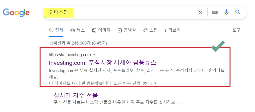 ▼직접 실시간으로 반영되는 세계 시가총액 상위종목을 확인하는 방법을 알려드리겠습니다. 알아보고자 하는 때에 바로 확인이 가능하고, 1위부터 마지막까지 수천 개의 종목을 확인할 수 있습니다. 일단 해당 서비스를 이용하려면 인베스팅 웹사이트에 접속해야 합니다.