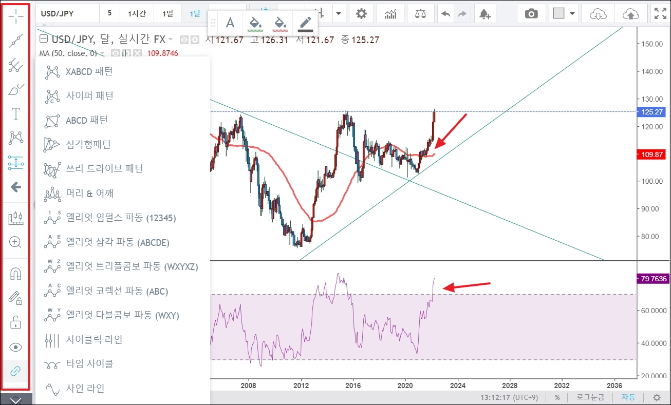 최근 무섭게 오르고 있는 엔화 환율 전망을 해보도록 하겠습니다. 시기와 각 국의 정책에 따라 변할 수 있기 때문에 제가 이용하는 방법과 도구를 알려드리겠습니다. 상승 추세가 단기간에 끝나지 않을 것 같지만, 언제든 국제 정세나 일본의 경제 정책에 따라 바뀔 수 있습니다.