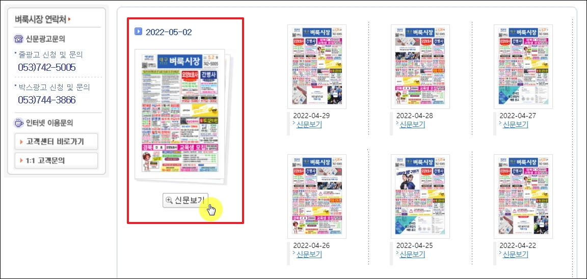 오늘자 대구 벼룩시장 종이신문그대로보기 이용하기.