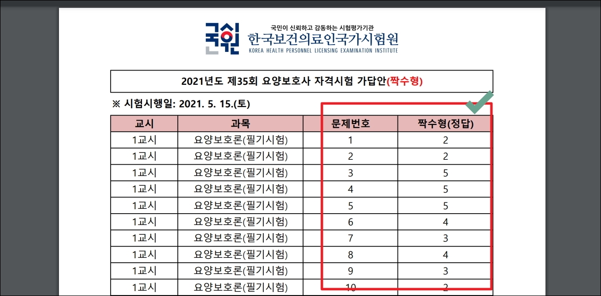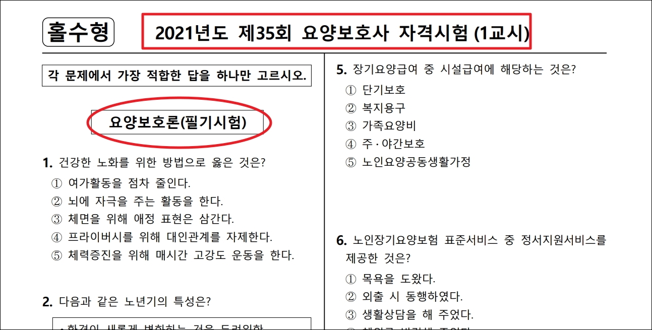 ▼기출문제를 풀어보고, 채점을 할 수 있도록 답안지 자료도 이곳에서 무료로 제공하고 있습니다. 시험지의 경우 홀수형과 짝수형이 있으니 이를 잘 구분하여 채점하시길 바랍니다.