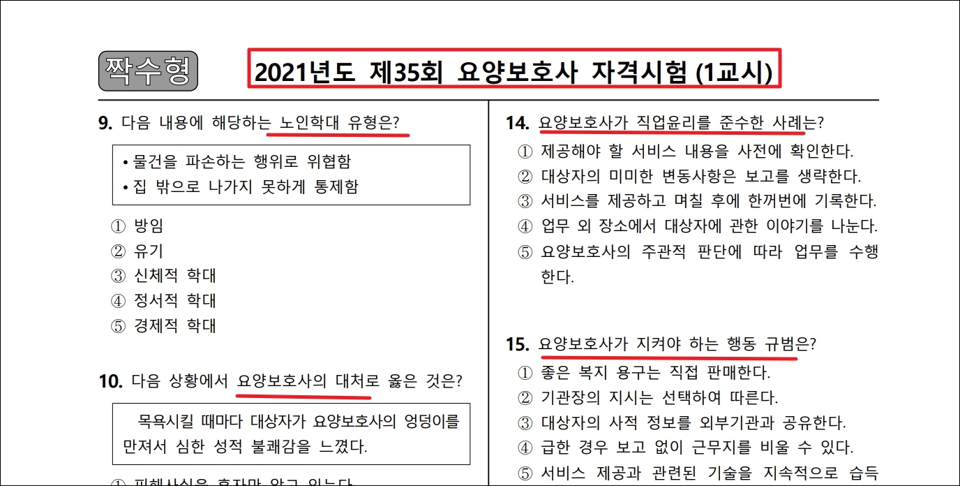 최근에 출제된 요양보호사 기출문제 무료 다운 받기.