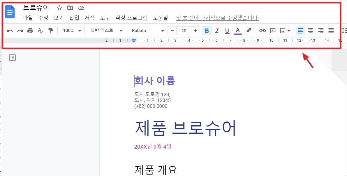 ▼저는 브로슈어 템플릿을 선택했습니다. 바로 글 작성에 돌입할 수 있도록 프로그램 화면이 나타났는데요. 우리가 평소에 보면 워드프로세서의 모습과 유사합니다. 국내에서 많이 쓰이는 아래아 한글이나 MS워드도 다음과 같이 생겼죠. 일반적으로 문서작성에 필요한 글자 크기 변경, 글자체 선택, 정렬 등의 기능이 대부분 갖추어져 있습니다.