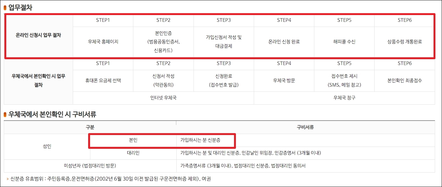 온라인으로 진행하는 것이 번거롭게 느껴지시는 분들은 신분증을 들고 우체국을 방문하면 됩니다. 우체국에 LG 유플러스 알뜰폰 담당자가 자리를 비운 경우를 대비하여 미리 전화를 해보고 방문하는 것이 좋습니다.