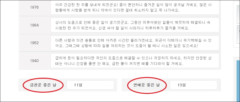 ▼무료로 보는 띠별운세를 통해 해당 주간 동안 금전운이 좋거나 연애운이 좋은 날이 언제 인지 알 수 있는데요. 경제 관련 결정을 하거나 데이터 날짜를 잡을 때 해당 날짜를 참고하면 좋습니다.