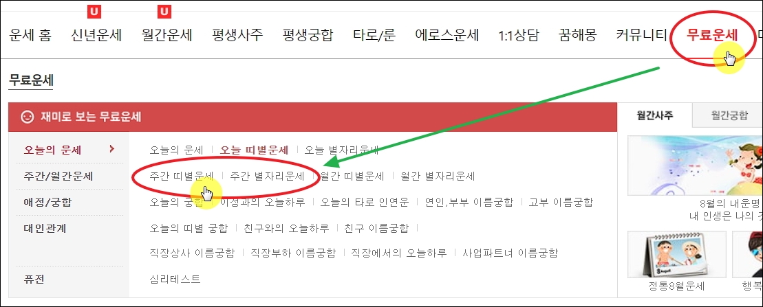 행운을 가져다 주는 무료 주간운세 이용하기.