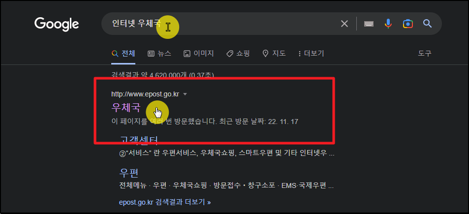 그럼 본격적으로 인터넷 우체국 사이트에서 내용증명을 보내는 방법을 알려 드리겠습니다. 일단 검색을 통해 또는 다음과 같은 주소를 입력하여 최고 사이트에 접속해 주세요.