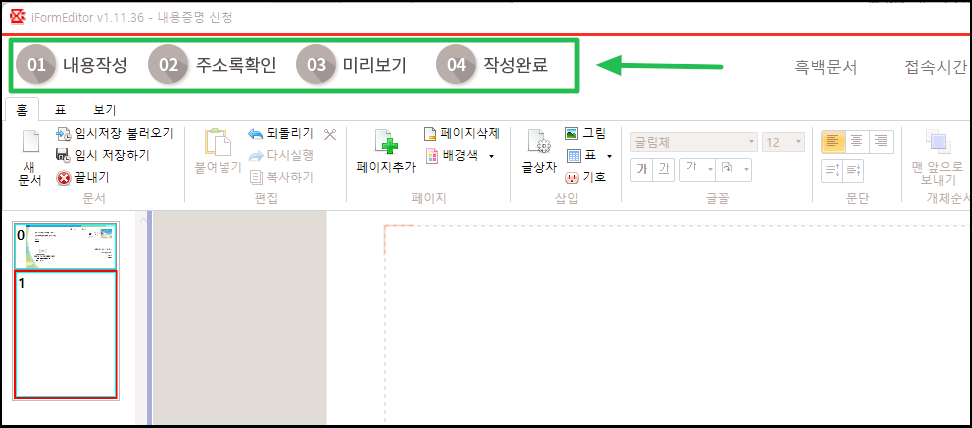 다음과 같이 인터넷 우체국에서 제공되는 문서 편집기가 열립니다. 여기에서 내용증명 문서를 작성하면 돼요. 앞서 다운로드 받은 양식을 가지고, 알맞게 수정한 후 이곳에 업로드 하는 방식으로 사용해도 됩니다.