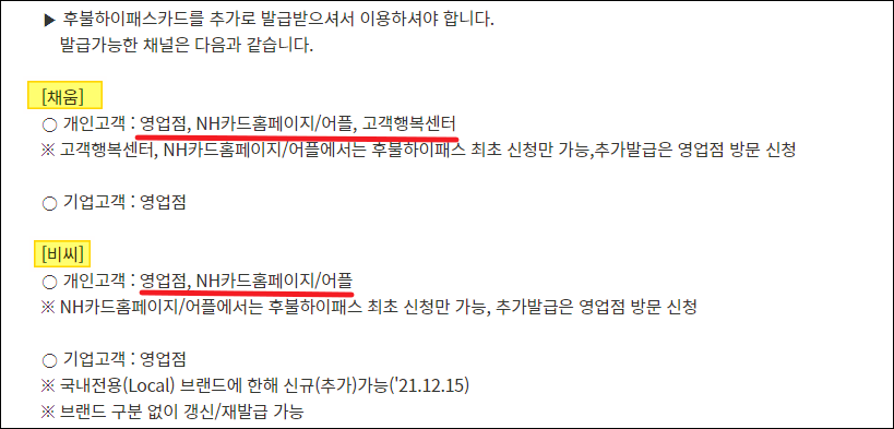 참고로 추가 발급을 신청하거나 기업고객의 경우에는 영업점을 통해서만 하이패스 후불카드 만들기 가능하오니 참고해주시기 바랍니다.