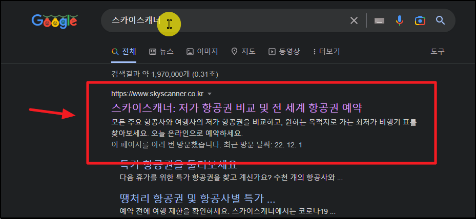 항공권 가격 비교 사이트인 스카이스캐너 사이트를 이용하려고 하는데요. 로그인도 필요 없고, 무료로 사용할 수 있습니다.