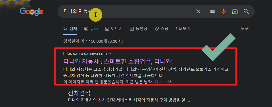 ▼ 그럼 방금 살펴본 시세표 시스템을 이용하는 방법을 알려드리겠습니다. 여러 가지 비교를 할 수 있는 다나와 사이트를 이용하면 되는데요. 이곳에서 운영하는 다나와 자동차 사이트에 접속해 주세요.
