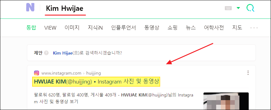 ▼ 결과를 클릭하면 다음과 같이 인터넷 사이트에서 해당 영어 이름을 사용한 사람이나 관련 정보가 나타납니다. 이런 식으로 실제 사용하고 있는 영문 표기를 찾을 수 있는데요. 많은 사람들이 사용하는 표기인 만큼 신뢰도가 높다고 할 수 있겠죠.
