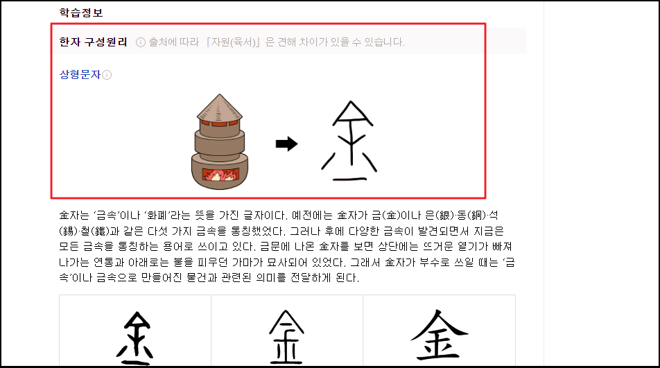 ▼ 마지막으로 학습정보에 보면 한문의 구성원리를 알 수 있는데요. 한자 검색기를 학습용으로 사용하는 분이라면 이 부분을 꼭 한 번 봐주세요. 공부하는 데에 많은 도움이 돼요.