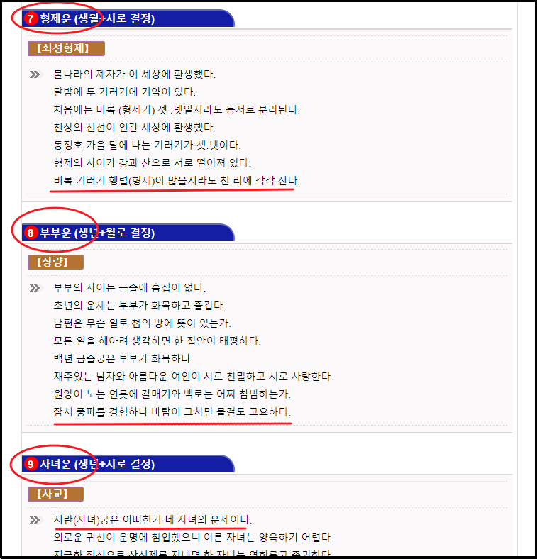 ▲ 점점 살기 팍팍한 사회가 되는 것 같을 때에는 가족만큼 소중하고, 의지할 만한 곳도 없습니다. 이에 대한 것도 당사주를 통해 보는 것이 가능한데요. 형제운, 부부운, 자녀운을 꼼꼼히 읽어주세요. 좋은 점괘만 나오라는 법은 없기 때문에 마음을 굳게 먹고 당사주 보는법을 진행해주시길 바랍니다. 나쁜 점괘가 나오면 이를 헤쳐나갈 조언도 해주기 때문에 너무 걱정하실 필요는 없어요. 다음에는 토정비결 보는법에 대해서도 알려드릴테니 기대해 주세요.