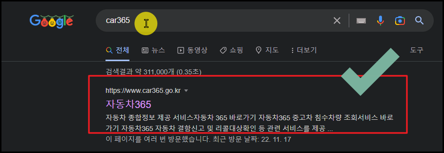 ▲ 공공기관에서는 국민들의 편의를 위하여 중고차 매매를 할 때 도움이 되는 사이트를 운영하고 있습니다. 이것 외에도 많은 민원 서비스를 제공하고 있는데요. 이러한 서비스를 이용하려면 "자동차365" 사이트에 접속하면 됩니다.