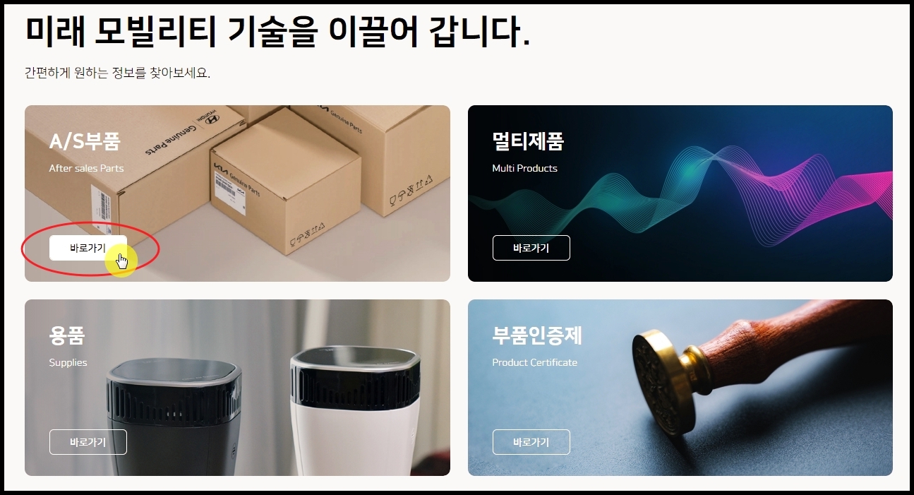 ▲ 새롭게 열린 페이지를 보면 AS 용품 및 부품 사이트 바로 가기 버튼이 있습니다.
