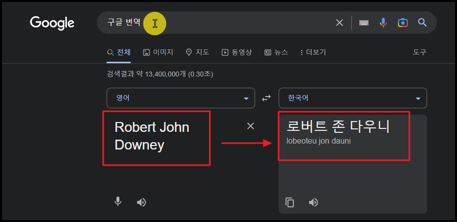 ▼ 일단 영어이름을 한글로 전화를 할 때 가장 먼저  해야 하는 일은 구글 번역기를 사용하는 것입니다.  왜냐하면 바로 결과를  확인할 수 있고,  여기서 제대로 되지 않는다면 두 번째 단계로 넘어가면 되기 때문입니다. 첫 번째 방문이라고 할 수 있죠. 거의 대부분의 영어이름은 이 방법을 통해  제대로  한글변환을 할 수 있어요. 대부분의 경우에는 다음 단계를  진행해 보세요.