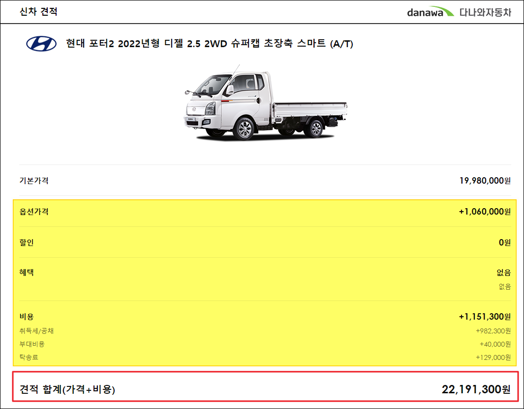 여기까지 진행했다면 사이트 화면에서 오른편에 구체적인 신차 가격표를 확인할 수 있습니다.