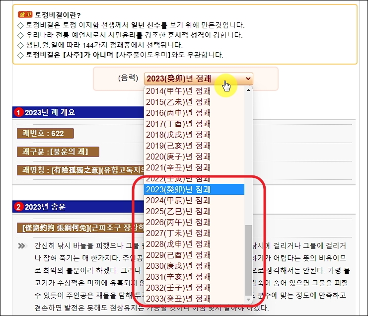 토정비결 무료 2023 및 모든 연도 보기