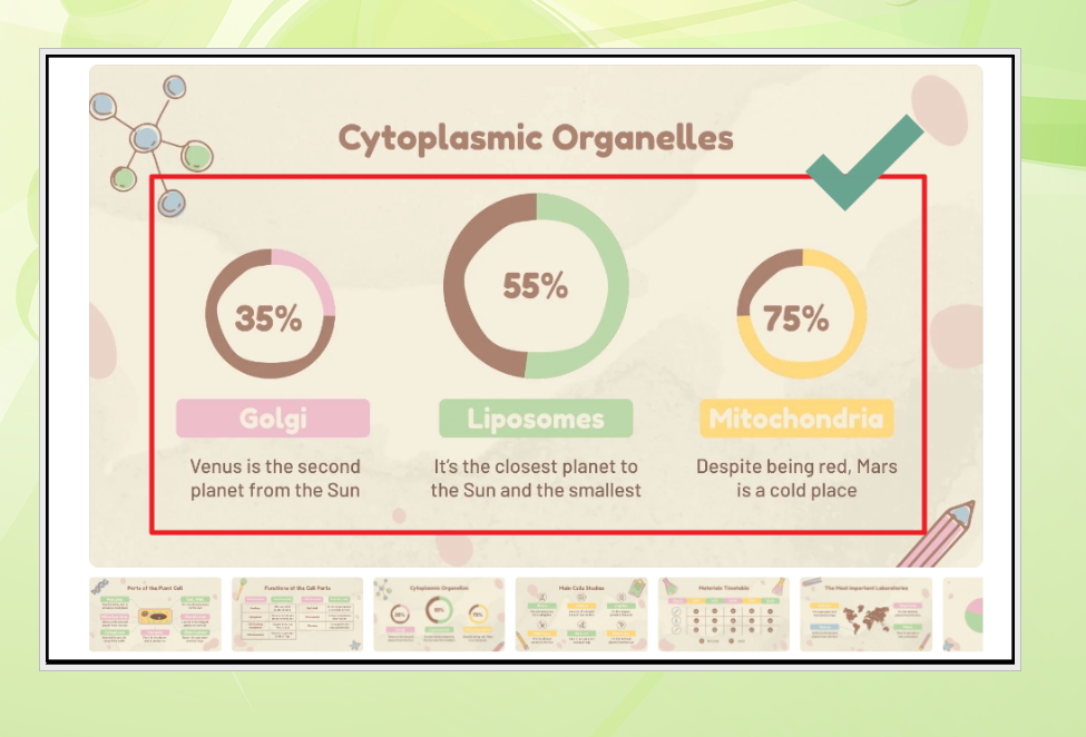 1. 개인적으로 다음과 같은 아기자기한 디자인을 선호하는 편입니다. 단순해 보이지만, 멋진 디자인의 재료를 적재적소에 배치가 되어 있어 허전함이 전혀 없습니다. 미리보기 이미지 아래를 보면 다른 슬라이드가 작게 표시되어 있는데요. 이것 하나만 사용해도 풍성하고, 알찬 PPT를 만들 수 있습니다. 당연히 내용은 자신에게 변경이 가능해요.