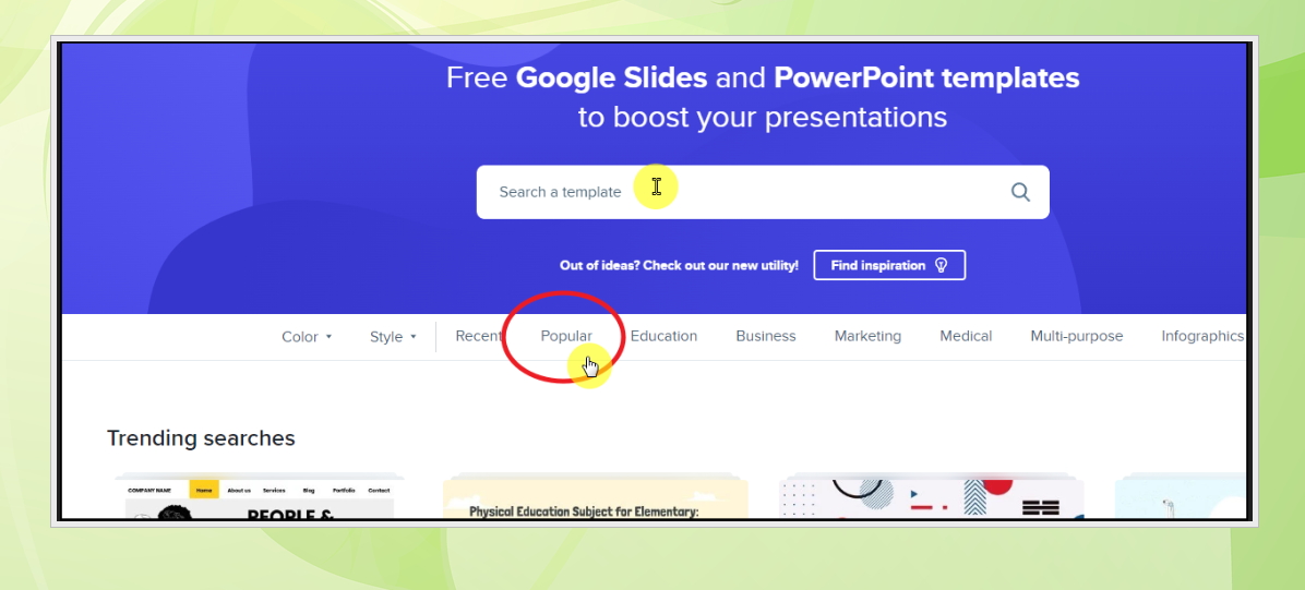 3. 사이트에 접속하면 "Free Google Slides and PowerPoint templates"라는 안내 문구가 나타납니다. PPT 템플릿을 무료로 제공하고 있다는 내용인데요. 여기에서 가장 인기 있는 템플릿을 찾아보겠습니다. 메뉴에서 [Popular]를 선택하면 돼요.