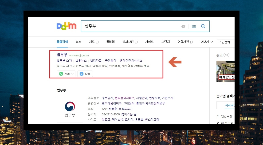 2. 간단하게 검색을 하여 법무부 사이트에 접속해 보겠습니다.