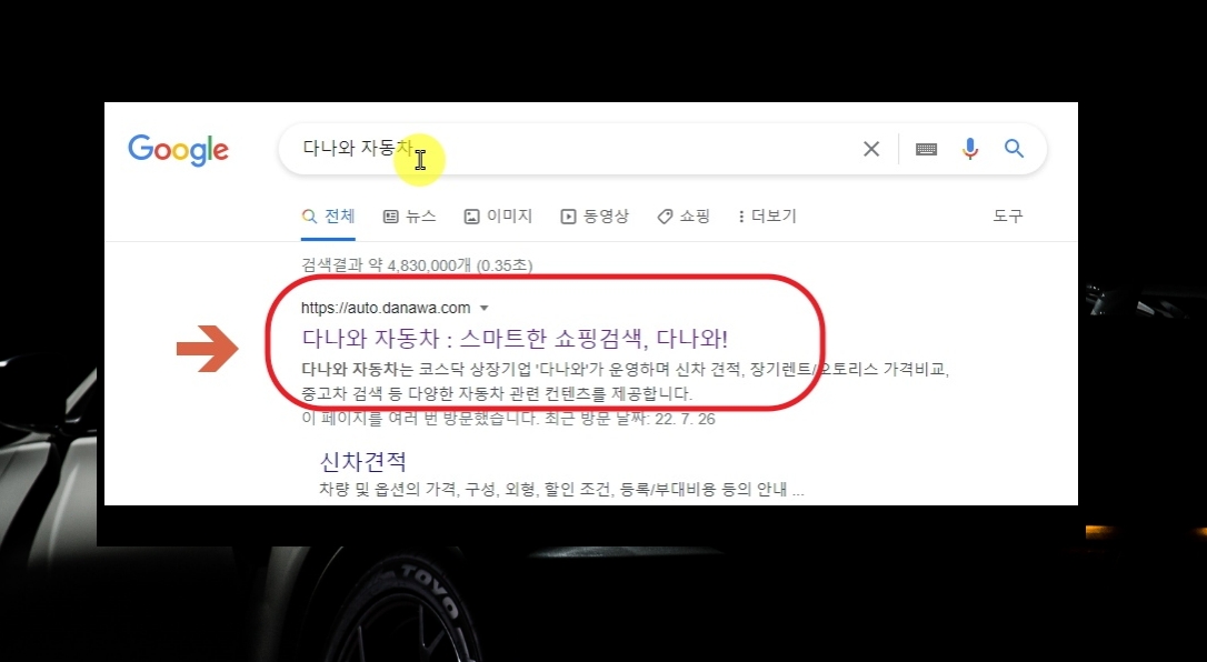 2. 위와 같이 편하게 장기렌트 비용을 계산하고, 더 나아가 여러 업체의 혜택이나 조건을 편하게 비교하는 방법을 알려드리겠습니다. 가격비교 사이트로 유명한 다나와 자동차 사이트를 활용하면 되는데요. 이곳에서는 신차, 중고차, 리스에 대한 정보와 관련 서비스도 많이 제공하고 있습니다.