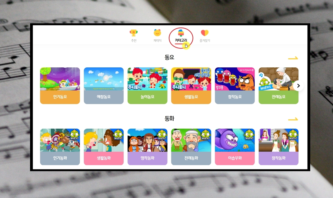 7. 쥬니버에서는 동요나 동화 컨텐츠도 많이 있습니다. 인기 있는 작품만 골라서 감상할 수도 있고, 전래동요나 이솝우화와 같이 정겹고 교육적인 컨텐츠를 감상하는 것도 가능합니다.