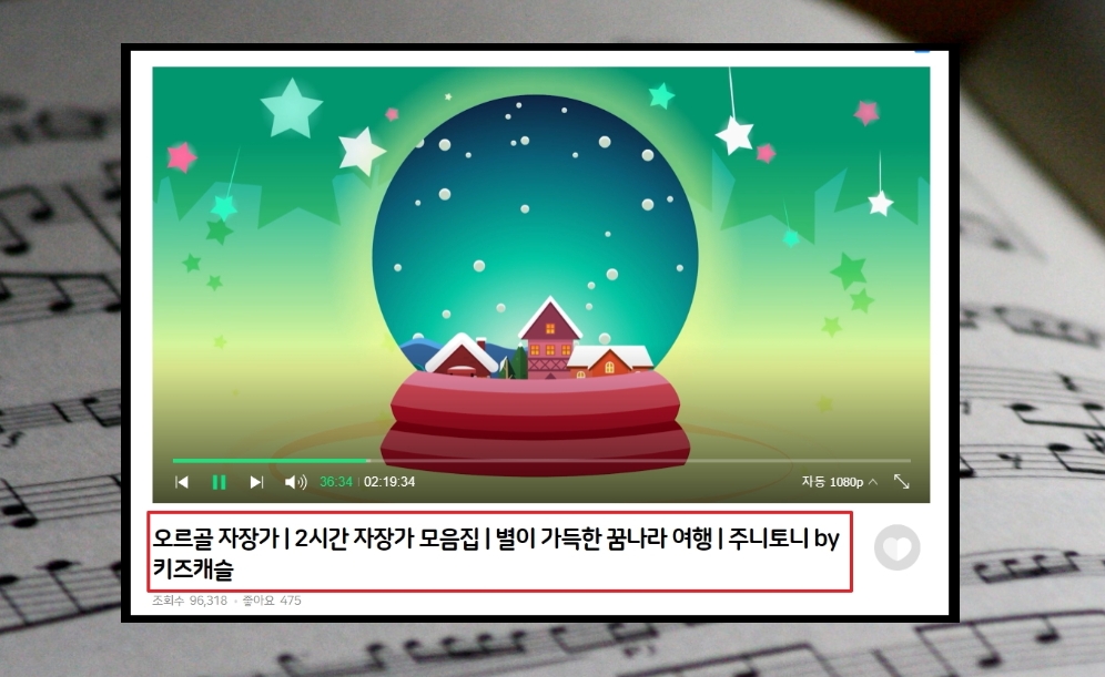 오르골 연주로 들려주는 자장가는 아이들의 집중력 증진과 스트레스 해소에 도움이 된다고 합니다. 아이들은 물론이고, 어른들이 듣기에도 정말 좋은데요.