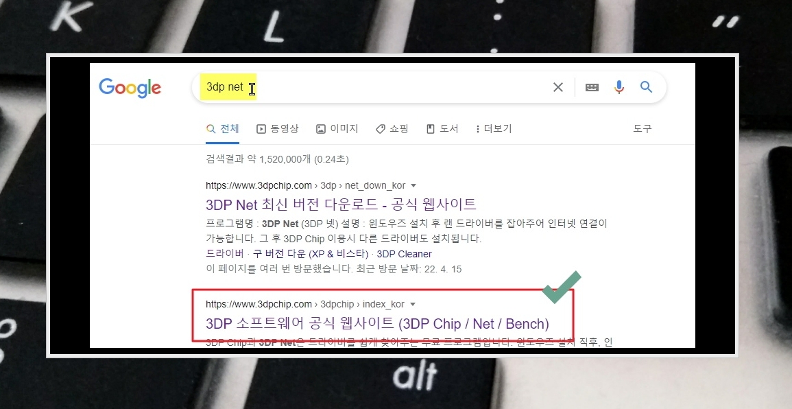 8. 윈도우에서 자동으로 설치되는 드라이버로는 해결이 안될때에는 직접 드라이버를 설치해주면 됩니다. 화상 키보드를 이용하여 3dp net 사이트에 접속해 주세요.