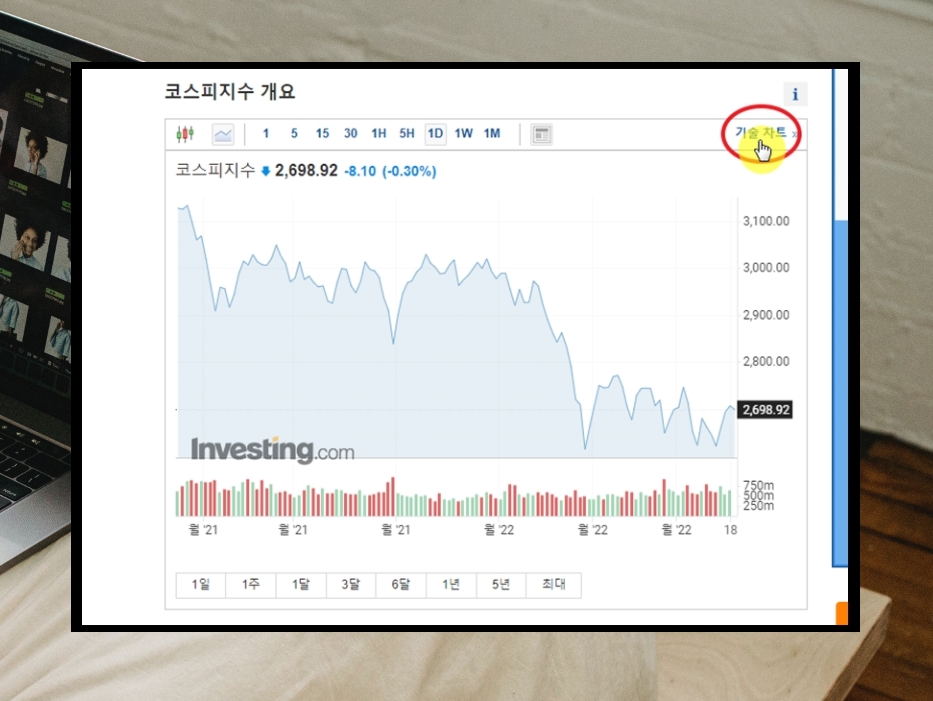 14. 이곳에서 제공하는 차트는 2가지 입니다. 처음 보게 되는 것은 기본 차트로써, 간단히 보고 싶을 때 사용합니다. 여기에서 우측 상단에 보면 [기술 차트] 버튼이 있습니다. 해당 버튼을 클릭합니다.