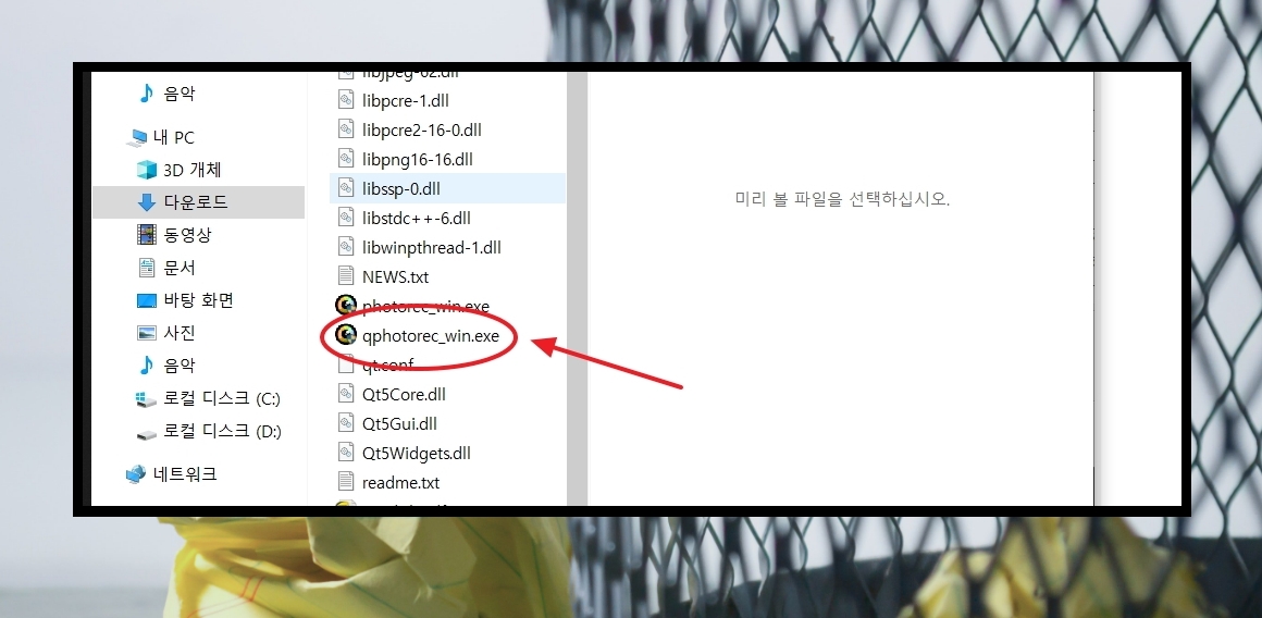 3. 사이트에 다운 받은 소프트웨어는 압축이 되어 있습니다. 압축을 풀고, qphotorec 이라는 실행 파일을 마우스로 더블 클릭합니다.