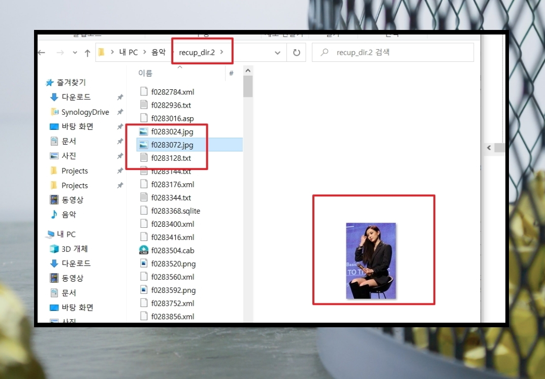 7. 폴더를 열어보면 이렇게 여러 폴더가 생성되어 있음을 알 수 있습니다. 여기에서 각 폴더를 열어보면 파일 저장 상태를 휴지통 비우기 전으로 되돌릴 수 있습니다.