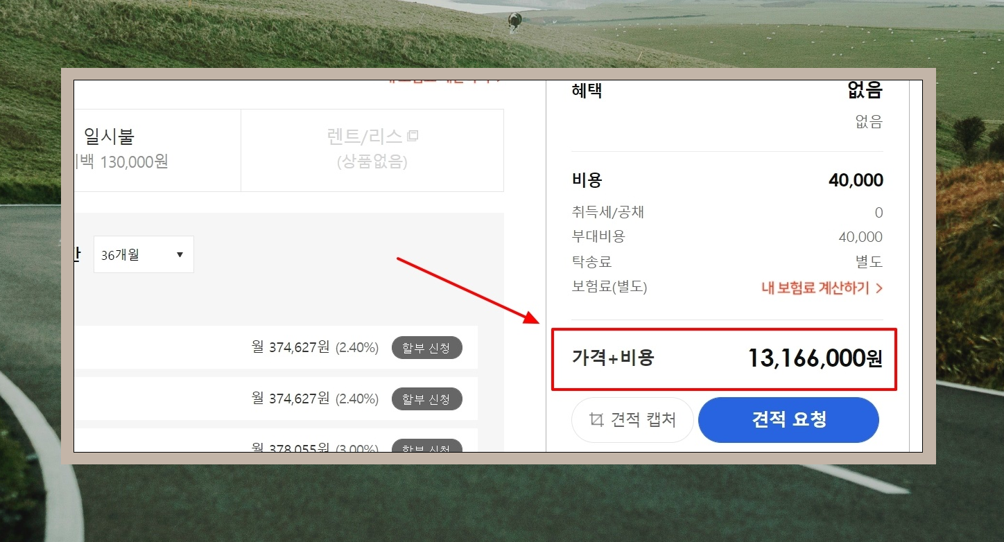 신차 구입 시 발생하는 비용인 취득세, 공채, 탁송료에 대한 조건도 선택합니다. 그럼 바로 오른편에 있는 가격표를 통해 르노 트위지 구매 시 최종 비용이 얼마인지 알 수 있습니다. 좀 더 정확하게 알아보려면 "견적 요청" 버튼을 눌러 딜러의 답변을 받아보면 되는데요. 크게 차이가 나지 않을 겁니다.