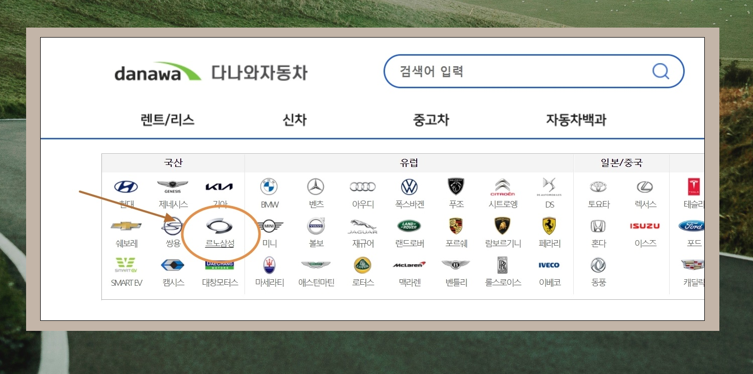 3. 다나와 자동차 홈페이지에 접속하면 메인화면에 나오는 여러 자동차 브랜드 중에서 "르노삼성"을 선택해 주세요.