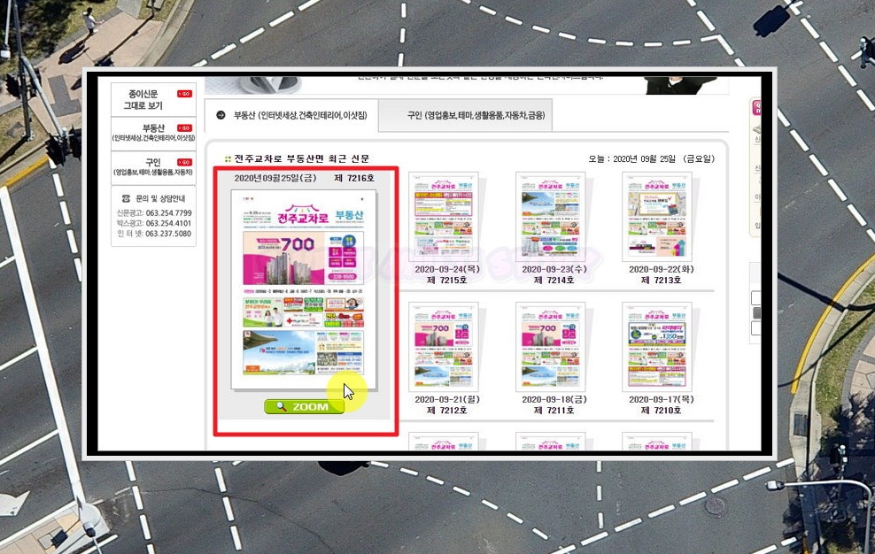 5. 도로 옆에 있는 배포대에 있던 종이신문처럼 볼 수 있는 그대로보기 서비스가 나타났어요. 부동산과 구인 이렇게 2가지 버전으로 나뉘어 있는데요. 부동산의 경우 인터넷 세상, 건축 인테리어, 이삿짐 서비스를 포함하고 있고, 구인의 경우 영업 홍보, 테마, 생활용품, 자동차, 금융 서비스를 포함하고 있어요. 필요한 정보에 맞게 선택해서 이용하시면 돼요.