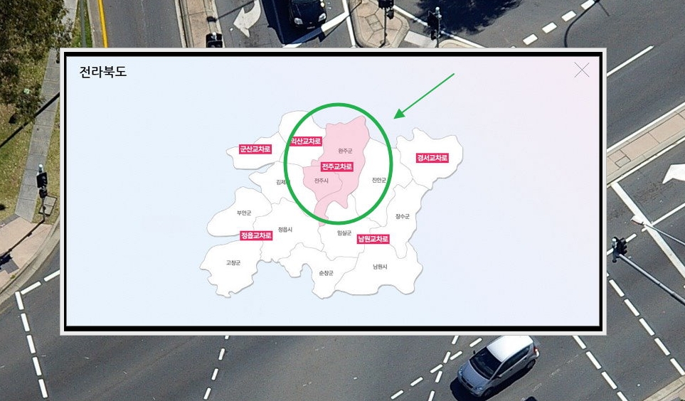 3. 전라북도 지도가 나타났어요. 여기에서 보면 전주 외에도 군산, 익산, 정읍, 남원, 경서 지역의 교차로신문이 있네요. 이번 시간에는 전주 지역의 정보를 찾아보는 방법을 알려드릴게요.