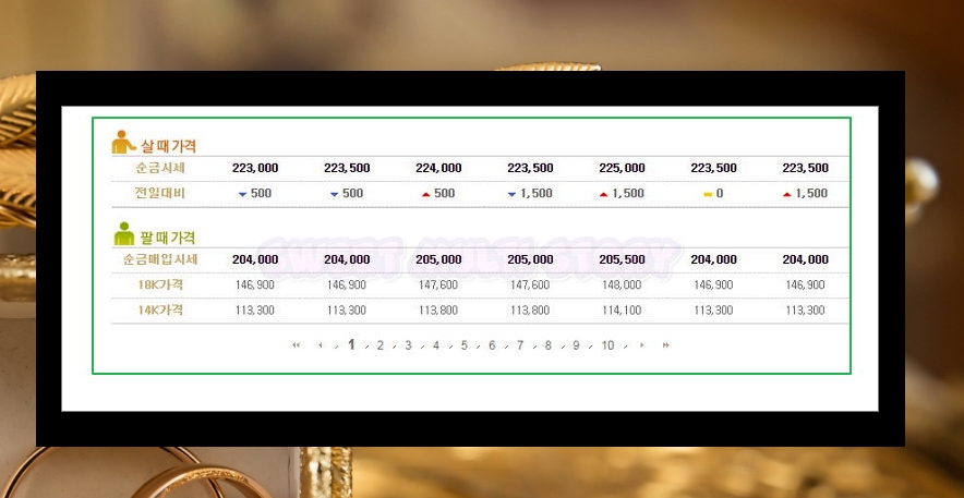 4. 그래프 아래에는 날짜별로 살 때와 팔 때의 가격을 알 수 있어요. 18k와 14k 한돈에 대한 금값을 확인해 보세요.