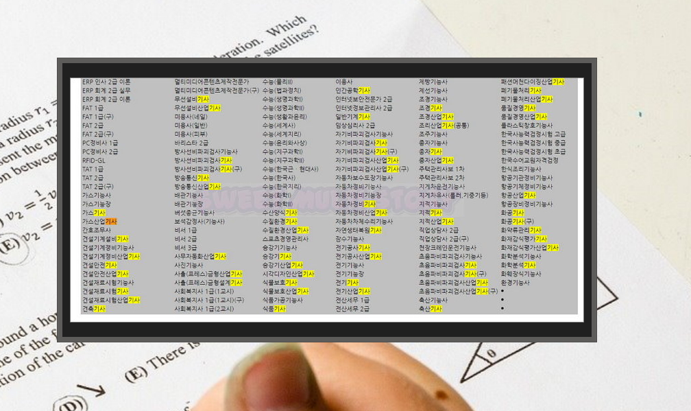일반적으로 많이 취득하는 자격증으로는 컴퓨터 활용능력과 정보처리기사가 있습니다. 요즘 대부분의 일을 PC로 하기 때문에 이 두 가지 자격증의 활용도가 높거든요. 직장을 다녀보시면 아시겠지만, 엑셀을 잘하는 사람을 좋아하는 경우가 많습니다. 이러한 자격증을 준비하신다면 comcbt 사이트에 접속해 보세요. 무료 기출문제가 많습니다.
