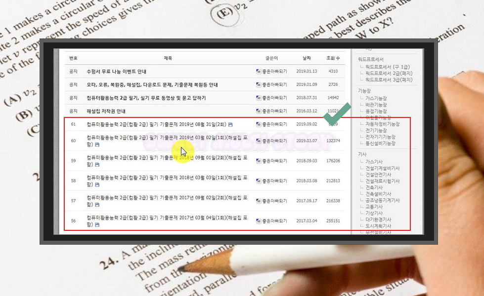 3. 제가 앞서 언급한 컴퓨터 활용능력 1급, 2급과 정보처리기능사, 산업기사, 기사에 대한 자료도 이곳에서 구할 수 있어요.