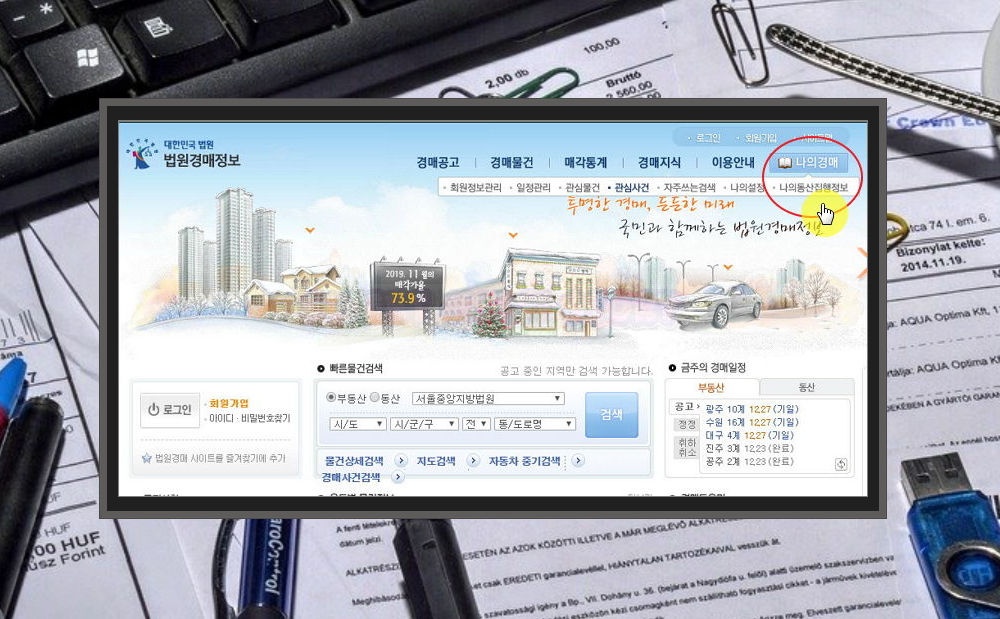 7. 부동산이나 동상에 관련된 경매사건의 경우에는 법원경매정보 홈페이지에서 검색할 수 있어요. 상단에 있는 메뉴에서 나의 경매를 클릭하면 쉽게 찾을 수 있어요. 관심 있는 물건에 대한 정보도 얻을 수 있고요.