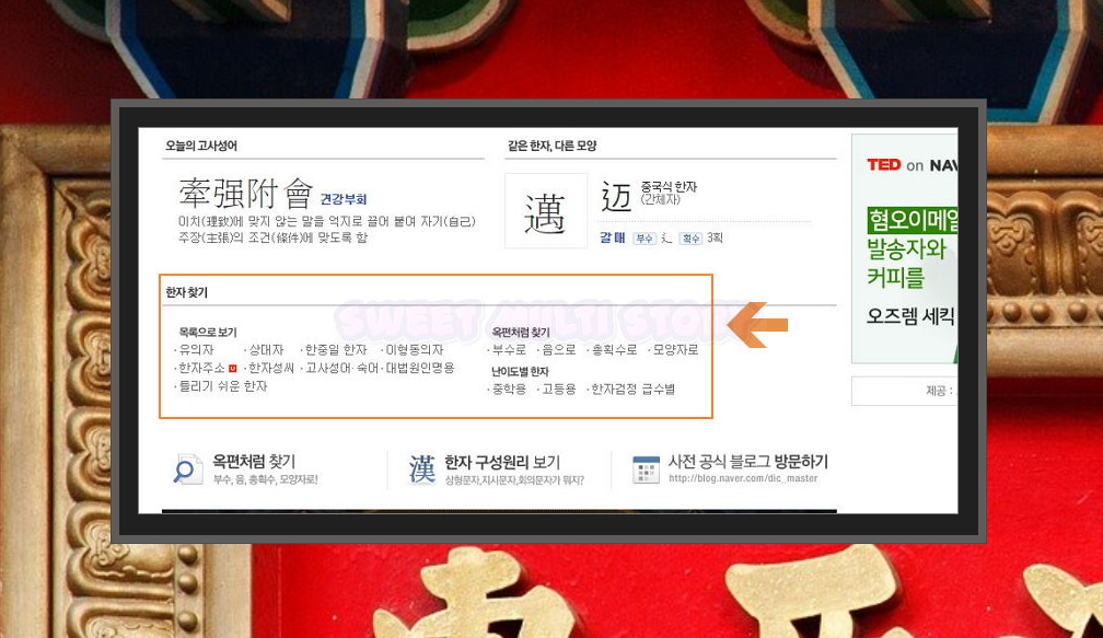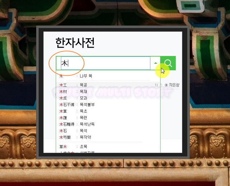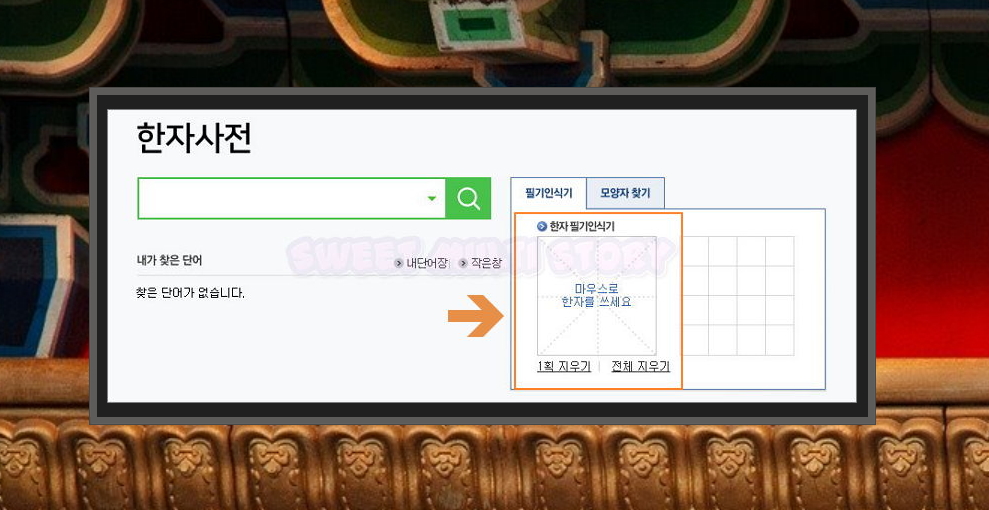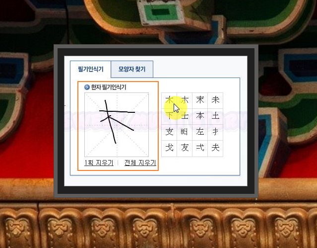 요즘에는 마우스나 손가락을 사용하여 한자의 모양을 그리는 것만으로도 옥편 내용을 손쉽게 찾아볼 수 있습니다. 기존에 책으로 찾을 때 보다 찾는 속도가 훨씬 빨라졌죠.