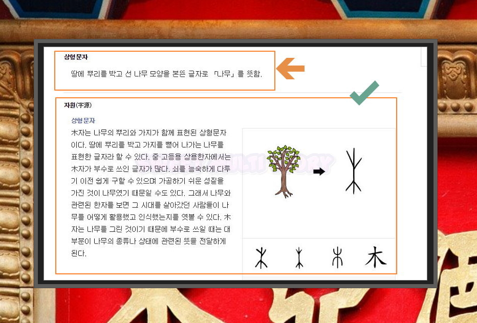 9. 상형문자나 자원에 대한 이야기도 볼 수 있는데요. 한자는 한글과 달리 표의문자이기 떄문에 해당 문자가 생성된 기원을 알면 오래 기억할 수 있어요.