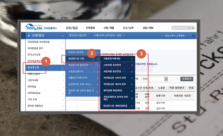 국세청 현금영수증 홈페이지 조회 및 등록 진행하기.