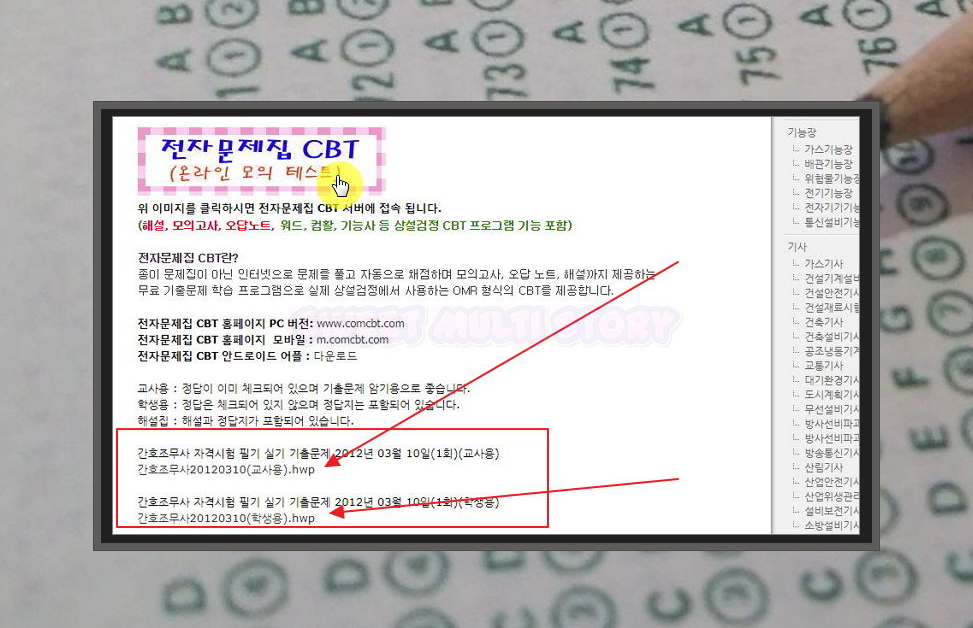 시험 준비를 할 때 활용할 수 있는 온라인 기출문제를 찾으신다면 comcbt 사이트에 접속해 주세요. 보통 컴퓨터 관련 자료를 많이 다루고 있지만, 그것 외에도 많이 있어요.